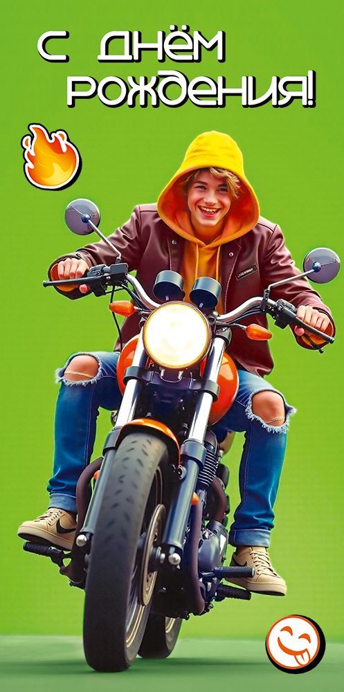 Конверт для денег формата евро предназначен для оформления денежного подарка на день рождения и ориентирован на регулярные закупки для розничных точек, сувенирных отделов и интернет-магазинов. Изделие выполнено из плотного картона, обеспечивающего устойчивость к изгибам и истиранию при транспортировке и выкладке. Готовый размер конверта 168 × 84 мм позволяет удобно размещать внутри купюры стандартных размеров без сгибов, а также подарочные сертификаты. Лицевая сторона оформлена ярким полноцветным изображением подростка на мотоцикле на однотонном зелёном фоне с графическими элементами в виде эмодзи и надписью «С Днём рождения!», что делает конверт актуальным для поздравления подростков и молодёжи, а также взрослых с интересом к мототематике. Наличие готового текста сокращает время подготовки подарка в рознице и в корпоративных закупках. Фигурная вырубка подчёркивает контур изображения и придаёт изделию законченный презентационный вид, при этом конструкция сохраняет жёсткость, не деформируется при хранении стопками и подходит для стандартных витринных карманов формата евро. Отделка глянцевым УФ-лаком повышает износостойкость лицевой поверхности, защищает печать от выцветания и мелких механических повреждений, облегчает протирку от загрязнений при активном обороте товара. Внутренняя сторона рассчитана на краткое персональное поздравление и подпись, не просвечивает содержимое и не коробится при использовании стандартных клеевых лент или наклеек для запечатывания. Конверт поставляется по 10, что удобно для учёта и планирования ассортимента, формирования выкладки по тематикам и оптимизации складских остатков в оптовом и розничном звене.