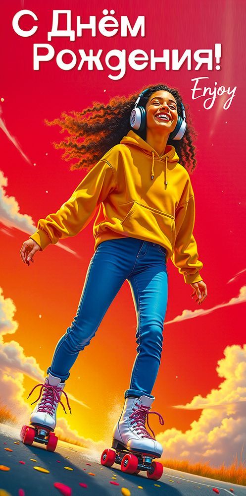 Конверт для денег формата евро изготовлен из плотного картона, обеспечивающего устойчивость к деформации при транспортировке и хранении, а также надежную защиту вложения. Габариты готового изделия составляют 168 × 84 мм, что позволяет удобно размещать стандартные денежные купюры и подарочные сертификаты без сгибов. Лицевая сторона оформлена полноцветным изображением в яркой современной стилистике: динамичная фигура девушки на роликах на фоне насыщенного красно-оранжевого неба подчеркивает тематику активного и позитивного празднования дня рождения. Нанесен поздравительный текст «С Днём Рождения!» и надпись «Enjoy», что делает изделие самодостаточным подарочным решением без необходимости дополнительного оформления. Поверхность дополнительно обработана глянцевым УФ-лаком, за счет чего изображение приобретает выраженный блеск, повышается стойкость к истиранию, загрязнениям и выцветанию, что важно при длительном хранении на складе и при частых перекладках в торговом зале. Фигурная вырубка придает конверту аккуратный, технологичный контур и облегчает открывание, при этом края остаются ровными и не мнутся при эксплуатации. Конверт рассчитан на использование в розничной продаже как готовое решение для денежного подарка подросткам и молодежи, а также как универсальный вариант для современных поздравлений. Для оптового сегмента изделие удобно в логистике: компактный плоский формат, стабильные размеры и жесткость картона позволяют формировать равномерные стопы, упрощают упаковку и учет. В одной упаковке — 10 конвертов, что оптимально для пополнения ассортимента в магазинах подарков, книжных и канцелярских отделах, а также при закупках для корпоративных поздравлений и поощрений персонала.