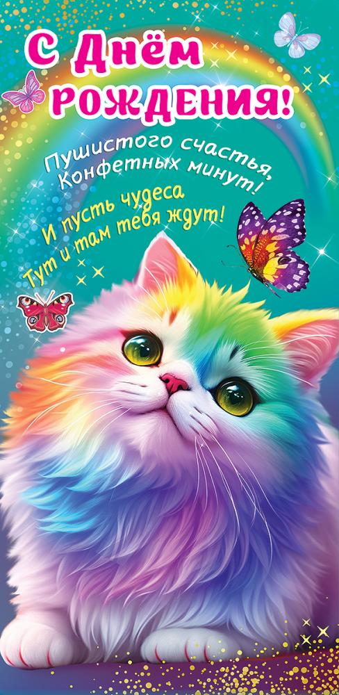 Конверт для денег «С Днем рождения! Пушистого счастья, конфетных минут!»