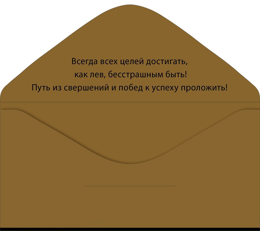 Конверт для денег формата «Евро» предназначен для вручения денежных подарков и сертификатов и ориентирован на использование в розничной продаже и оптовых поставках для магазинов подарочной продукции, сувенирных отделов и корпоративных закупок. Изделие изготовлено из плотного картона, обеспечивающего устойчивость формы, сохранность купюр и аккуратный внешний вид при транспортировке и хранении. Готовый размер конверта составляет 168 × 84 мм, что соответствует стандарту для размещения банкнот без сгибов и позволяет закладывать внутрь как наличные деньги, так и плоские подарочные карты. Лицевая сторона оформлена изображением льва в золотом тоне на темном фоне с декоративными рамками и орнаментом, что создает выраженную тематическую привязку к поздравлению с днем рождения и делает изделие универсальным вариантом для адресата мужского пола или для официальных поздравлений. На конверте присутствует готовый поздравительный текст «С ДНЕМ РОЖДЕНИЯ!», что сокращает время подготовки к вручению подарка и упрощает выбор для конечного покупателя. В отделке применена золотая фольга, формирующая четкие блестящие элементы рисунка и надписи, а также глянцевый УФ-лак, подчеркивающий отдельные детали и повышающий износостойкость поверхности. Такое сочетание технологий улучшает визуальное восприятие, повышает устойчивость к истиранию, выцветанию и мелким механическим повреждениям при перемещении товара в коробах и на витрине. Внутреннее пространство конверта рассчитано на стандартные купюры, возможна укладка нескольких банкнот без деформации, что важно для оптовых покупателей, формирующих ассортимент для разных ценовых категорий подарков. Конверты поставляются по 10 штук, что удобно для складского учета, планирования выкладки и формирования тематических полок ко дню рождения. Компактный формат и плотный картон обеспечивают стабильную укладку в транспортные короба, снижают риск замятий и облегчают хранение на складе и в торговом зале. Изделие подходит для индивидуальных и корпоративных поздравлений, может использоваться как самостоятельный элемент подарка или в составе подарочных наборов.