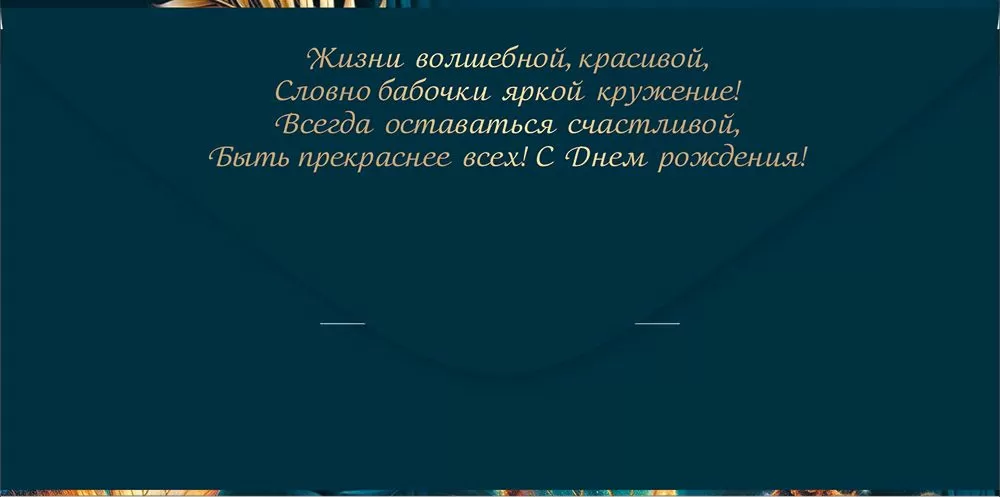 Поздравительный конверт для денег «С Днем рождения!» с волшебным дизайном преобразит любое торжество. На изделии изображены сияющие бабочки в глубоких синих оттенках. Также внутри находится текст с приятными пожеланиями. Данный дизайнерский конверт для денег идеально подойдет в качестве основного подарка или как приятное дополнение к нему. Внутрь можно поместить любую денежную сумму, подарочный сертификат или билеты на концерт. Благодаря прочным материалам производства и качеству печати изделие удобно транспортировать и хранить – оно надолго сохранит свой яркий внешний вид, не помнется и не выцветет, что делает его не только хорошим подарком, но и прекрасным памятным сувениром!