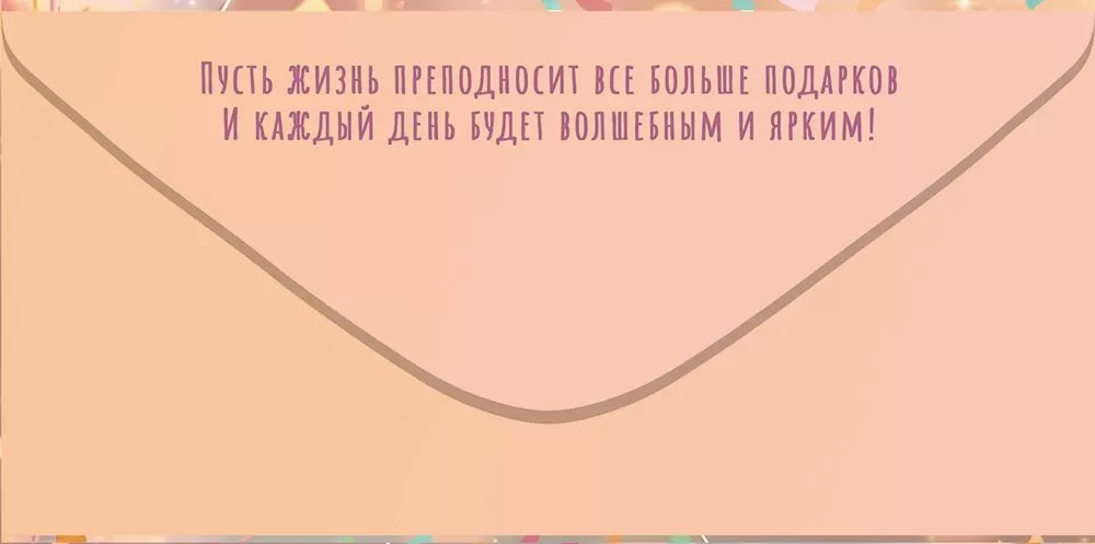 Поздравительный конверт для денег «С Днем рождения!» с праздничным дизайном преобразит любое торжество. Яркое изображение горы подарочных коробок с атласными лентами станет украшением вашего поздравления. Воздушные шары, цветное конфетти и чудесное сияние лишь дополняют этот сюжет. Также внутри находится текст с приятными пожеланиями. Данный дизайнерский конверт для денег идеально подойдет в качестве основного подарка или как приятное дополнение к нему. Внутрь можно поместить любую денежную сумму, подарочный сертификат или билеты на концерт. Благодаря прочным материалам производства и качеству печати изделие удобно транспортировать и хранить – оно надолго сохранит свой яркий внешний вид, не помнется и не выцветет, что делает его не только хорошим подарком, но и прекрасным памятным сувениром!