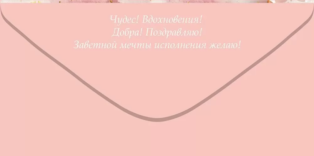 Поздравительный конверт для денег «Поздравляю!» с элегантным дизайном преобразит любое торжество. Белоснежные цветы вишни на тоненьких веточках создают весеннюю атмосферу и являются главным акцентом композиции. Их нежные лепестки открывают красивую сердцевинку. Фон украшен разводами розовой краски и золотыми вставками. Также внутри находится текст с приятными пожеланиями. Данный дизайнерский конверт для денег идеально подойдет в качестве основного подарка или как приятное дополнение к нему. Внутрь можно поместить любую денежную сумму, подарочный сертификат или билеты на концерт. Благодаря прочным материалам производства и качеству печати изделие удобно транспортировать и хранить – оно надолго сохранит свой яркий внешний вид, не помнется и не выцветет, что делает его не только хорошим подарком, но и прекрасным памятным сувениром!