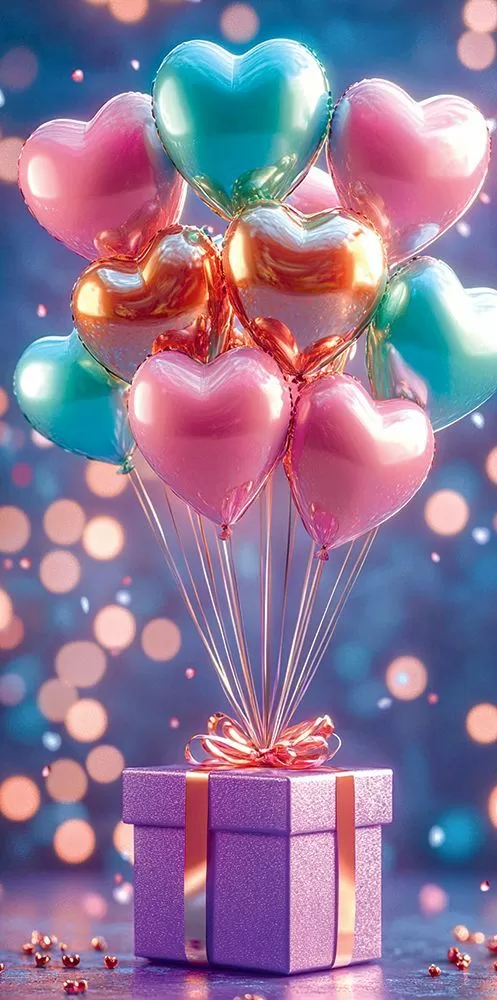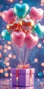Конверт для денег без надписи (шарики-сердечки с подарком)