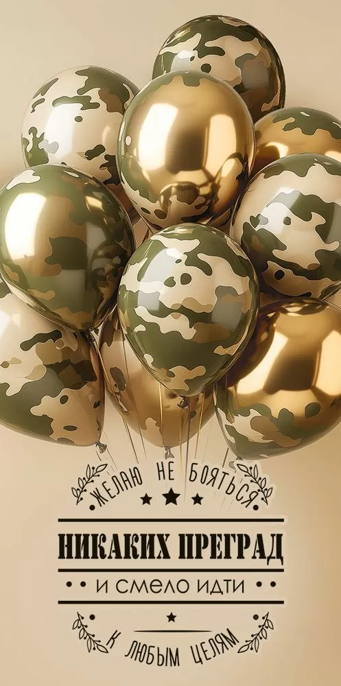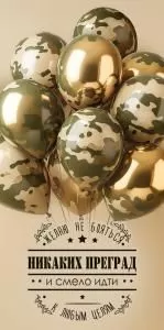 Конверт для денег "Никаких преград" идеально подходит в качестве подарка или дополнения к подарку. Яркая иллюстрация с воздушными шарами защитного цвета хаки вдохновит и поднимет настроение любому мужчине! Четкое полноцветное изображение покрыто глянцевым УФ-лаком. Материал – плотный картон. Размеры – 168х84 мм. На нашем сайте можно заказать конверты для денег оптом. В упаковке – 10 шт.