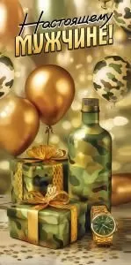 Конверт для денег "Настоящему мужчине" идеально подходит в качестве подарка или дополнения к подарку. Яркая иллюстрация с коробками-подарками, блестящими шарами и бутылкой порадует и поднимет настроение! Четкое полноцветное изображение покрыто золотыми блестками в лаке. Материал – плотный картон. Размеры – 168х84 мм. На нашем сайте можно заказать конверты для денег оптом. В упаковке – 10 шт.