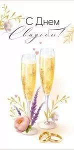 Поздравительный конверт для денег «С Днем свадьбы!» с изысканным дизайном преобразит любое торжество. Изделие украшено изображениями двух бокалов и золотых колец. Изящные цветы и листья дополняют сюжет. Лаконичный внешний вид конверта позволит оставить после себя неизгладимое впечатление. Внутри конверта – замечательные стихи с теплыми пожеланиями. Данный дизайнерский конверт для денег идеально подойдет в качестве основного подарка или как приятное дополнение к нему. Внутрь можно поместить любую денежную сумму, подарочный сертификат или билеты на концерт. Благодаря прочным материалам производства и качеству печати изделие удобно транспортировать и хранить – оно надолго сохранит свой яркий внешний вид, не помнется и не выцветет, что делает его не только хорошим подарком, но и прекрасным памятным сувениром!