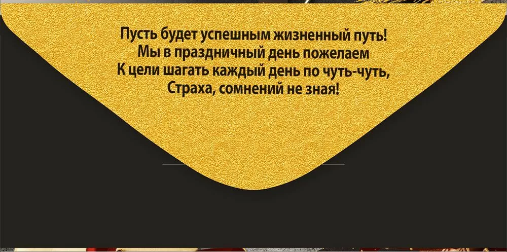 Поздравительный конверт для денег «Поздравляем!» с оригинальным и стильным дизайном преобразит любое торжество. Изображения запонок, наручных часов, подарочной коробки, темные насыщенные оттенки и отделка золотыми блестками – идеальное сочетание традиций и стиля. Отличный подарок для тех, кто ценит практичность во всем. Внутри конверта – замечательные стихи с теплыми пожеланиями. Данный дизайнерский конверт для денег идеально подойдет в качестве основного подарка или как приятное дополнение к нему. Внутрь можно поместить любую денежную сумму, подарочный сертификат или билеты на концерт. Благодаря прочным материалам производства и качеству печати изделие удобно транспортировать и хранить – оно надолго сохранит свой яркий внешний вид, не помнется и не выцветет, что делает его не только хорошим подарком, но и прекрасным памятным сувениром!