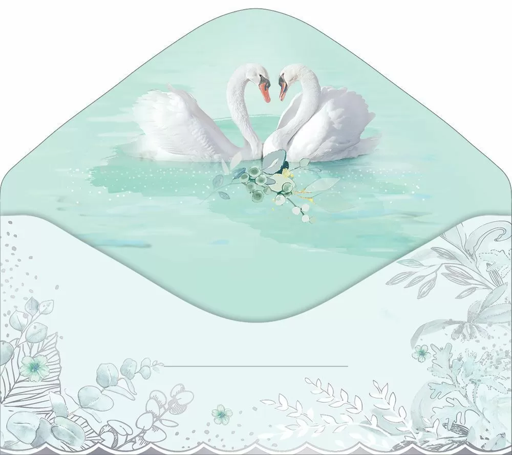Конверт для денег «С днём свадьбы» формата евро предназначен для оформления денежного подарка молодожёнам и рассчитан на использование в розничной продаже и оптовых поставках для свадебных салонов, магазинов подарков и канцелярии. Изделие изготовлено из плотного картона, что обеспечивает стабильную геометрию, сохранность купюр стандартного евроформата и устойчивость к деформации при транспортировке и хранении. Готовый размер конверта 168 × 84 мм позволяет удобно размещать внутри как сложенные банкноты, так и вложенные поздравительные карточки. Фигурная вырубка по краю придаёт изделию аккуратный декоративный контур и обеспечивает точное совпадение линий сгиба, что важно при серийной выкладке на витрине и формировании однородного ассортимента. Лицевая сторона оформлена в светлой пастельной гамме с флористическими элементами, изображением обручальных колец и надписью «С днём свадьбы!», что делает конверт тематически привязанным к свадебной церемонии и последующим семейным торжествам. Отделка включает лак soft-touch, создающий приятную на ощупь бархатистую поверхность и снижающий риск истирания печати при многократных контактах, а также серебряную фольгу, выделяющую ключевые элементы дизайна и обеспечивающую устойчивый декоративный эффект без потускнения при стандартных условиях хранения. Конверт поставляется в упаковке по 10 штук, что удобно для формирования минимальных и средних оптовых партий, оптимизации складских остатков и планирования сезонных закупок. Конструкция рассчитана на ручное вложение денег без дополнительного крепежа, закрытие осуществляется за счёт стандартного клапана, что упрощает использование в потоке при подготовке подарков на банкетах и выездных церемониях. Плотный картон сохраняет форму конверта в подарочных пакетах и коробках, предотвращая заломы и улучшая общий внешний вид упаковки денежного подарка. Дизайн и размеры позволяют включать данную позицию в унифицированные линейки свадебных аксессуаров и использовать в комплексных предложениях с открытками и подарочными пакетами.