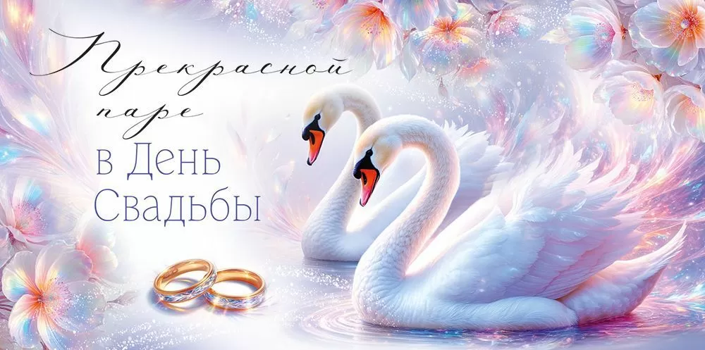 Поздравительный конверт для денег «Прекрасной паре в день свадьбы» с волшебным дизайном преобразит любое торжество. На изделии изображена пара белоснежных лебедей, плывущих по водной глади, изящно изогнув свои шеи. Украшена картинка радужными полупрозрачными цветами и цветными разводами. Два золотых кольца дополняют свадебный сюжет. Также внутри находится текст с приятными пожеланиями. Данный дизайнерский конверт для денег идеально подойдет в качестве основного подарка или как приятное дополнение к нему. Внутрь можно поместить любую денежную сумму, подарочный сертификат или билеты на концерт. Благодаря прочным материалам производства и качеству печати изделие удобно транспортировать и хранить – оно надолго сохранит свой яркий внешний вид, не помнется и не выцветет, что делает его не только хорошим подарком, но и прекрасным памятным сувениром!