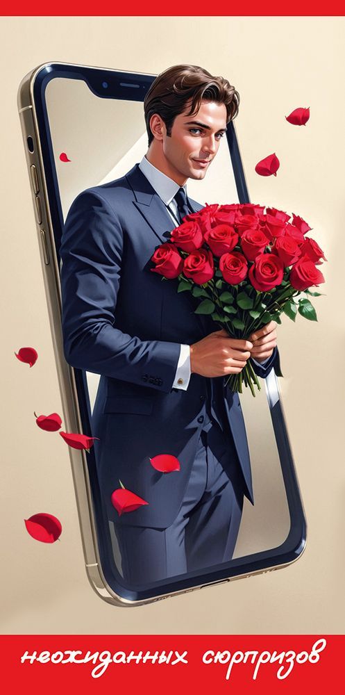 Конверт для денег формата евро выполнен из плотного картона и предназначен для аккуратного и презентабельного вручения денежных подарков. Готовое изделие имеет размеры 168 × 84 мм, что обеспечивает совместимость с большинством стандартных купюр и позволяет использовать конверт в единой ассортиментной линейке для различных поводов. Фигурная вырубка придаёт изделию аккуратный контур и облегчает вкладывание и извлечение вложения без деформации картона. Лицевая сторона оформлена полноцветным изображением молодого мужчины в классическом костюме с букетом красных роз, выходящего из рамки смартфона, с декоративным дополнением в виде падающих лепестков, что визуально подчёркивает тематику романтического подарка и современных способов общения. В нижней части размещён текст «неожиданных сюрпризов», уже встроенный в дизайн и не требующий дополнительного оформления со стороны пользователя. Отделка глянцевым УФ-лаком повышает износостойкость печати, защищает изображение от истирания и частичных загрязнений, улучшает цветопередачу и придаёт поверхности лёгкий отражающий эффект, важный при выкладке на витрине и под торговым освещением. Материал и тип отделки позволяют конвертам сохранять форму при транспортировке и складском хранении, в том числе при штабелировании и фасовке в стандартные короба. В упаковке 10 изделий, что удобно для формирования оптовых заказов, планирования остатков и пополнения ассортимента к праздничным датам. Конверт подходит для дарения денег, подарочных сертификатов или небольших плоских вложений на дни рождения, романтические события и личные праздники, обеспечивая единый визуальный стиль при оформлении подарков как в розничных продажах, так и в корпоративных закупках.