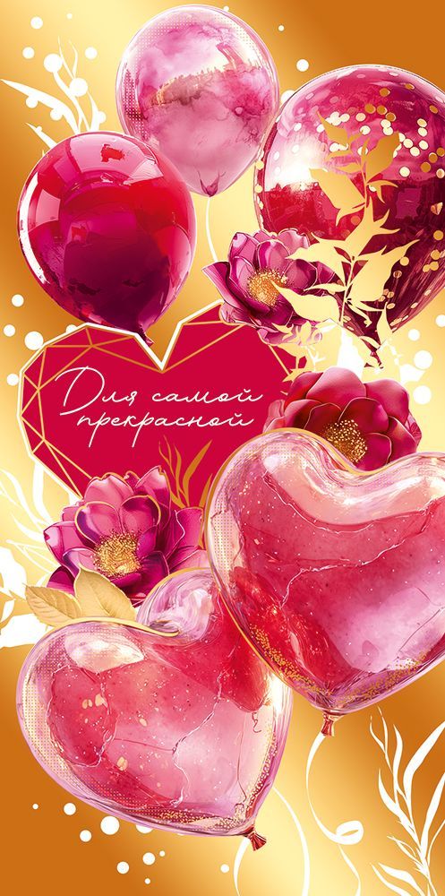Конверт для денег формата «Евро» изготовлен из плотного дизайнерского картона, рассчитанного на интенсивную эксплуатацию в розничных точках и при оптовых поставках. Размер готового изделия 168 × 84 мм обеспечивает совместимость с большинством стандартных денежных купюр и подарочных сертификатов, что удобно при формировании универсального ассортимента для магазинов подарков, цветочных салонов и сетевых торговых площадок. Конверт имеет фигурную вырубку, за счёт которой край и контуры изделия аккуратно подчеркивают декоративную композицию и облегчают извлечение вложения без деформации картона. Лицевая сторона оформлена красно-розовой композицией воздушных и сердцевидных шаров с крупными цветами на золотистом фоне, дополнена текстом «Для самой прекрасной», что ориентирует изделие на дарение женщинам и позволяет использовать его для дня рождения, 8 Марта, юбилеев и личных торжеств. Отделка выполнена золотой фольгой, создающей устойчивые к истиранию акценты и придающей изображению выразительный блеск при искусственном и дневном освещении; это важно для выкладки на витрине и формирования привлекательной полки без дополнительных декоративных материалов. Внутренняя сторона предусматривает размещение купюр и при необходимости короткого поздравительного текста, при этом плотность картона позволяет сохранять форму конверта при транспортировке и хранении в коробах, кассетах или напольных дисплеях. Конверт поставляется по 10 штук в упаковке, что удобно для планирования закупок, учёта остатков и равномерного пополнения ассортимента в сезонных и постоянных коллекциях подарочной продукции.