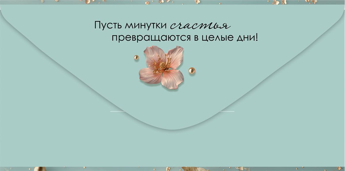 Конверт для денег формата евро предназначен для универсального использования в розничных и оптовых программах поздравительной продукции. Изделие изготовлено из плотного картона, что обеспечивает стабильную геометрию и сохранность купюр при хранении, транспортировке и вручении. Готовый размер конверта составляет 168 × 84 мм, формат соответствует стандартным банкнотам и позволяет закладывать как наличные деньги, так и сертификаты подходящих габаритов без деформации сгибов. Конверт имеет фигурную вырубку, за счет которой формируется аккуратный контур клапана и декоративные элементы, упрощающие открывание и придающие изделию завершенный вид в линейке подарочных аксессуаров. На лицевой стороне размещена композиция из объемных цветочных элементов в пастельных розово-золотистых тонах на светлом фоне, с акцентом на надписи «Поздравляю!», что делает конверт применимым для широкого круга событий: дни рождения, юбилеи, профессиональные праздники, семейные торжества. Поверхность оформлена отделкой: используются блестки в лаке золотого цвета и декоративные стразы, создающие локальные блики и визуальную глубину рисунка, при этом лаковый слой дополнительно защищает печать от истирания при частом перекладывании и групповой выкладке. Конструкция рассчитана на стандартные операции в торговых сетях: конверты удобно размещаются в кассетах, напольных и настенных стойках, не деформируются в транспортных коробах и сохраняют товарный вид при длительном складском хранении. Наличие текста заранее определяет назначение изделия и сокращает потребность в подборе дополнительных надписей, что удобно как для конечного покупателя, так и для формирования упрощенного ассортимента. В упаковке поставляется 10 конвертов, что позволяет эффективно планировать закупки, формировать единый визуальный ряд и использовать позицию как базовую в группе поздравительных конвертов общего назначения.