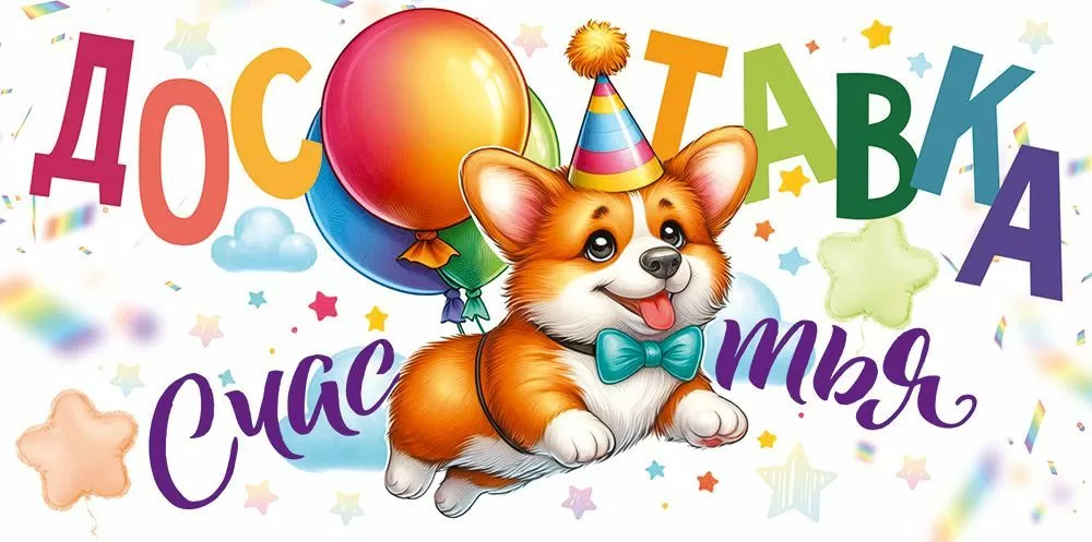 Поздравительный конверт для денег «Доставка счастья!» преобразит любое торжество. Изображение изделия выполнено в ярких праздничных цветах. Очаровательный щенок корги с разноцветными шариками обязательно порадует получателя, а светлый фон со звездочками подчеркнет яркую надпись и элементы переднего плана. Также внутри находится оригинальная надпись. Изделие идеально подойдет в качестве основного подарка или как приятное дополнение к нему. Внутрь можно поместить любую денежную сумму, подарочный сертификат или билеты на концерт. Благодаря прочным материалам производства и качеству печати изделие удобно транспортировать и хранить – оно надолго сохранит свой яркий внешний вид, не помнется и не выцветет, что делает его не только хорошим подарком, но и прекрасным памятным сувениром!
