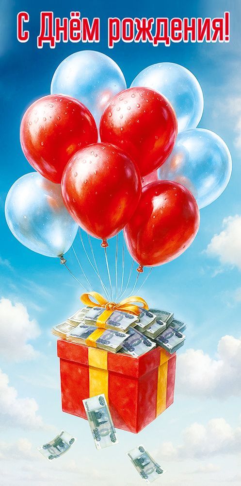Конверт для денег формата евро предназначен для оформления денежного подарка ко дню рождения и рассчитан на использование в розничной продаже и оптовых поставках для магазинов подарков, сувенирной и канцелярской продукции. Изделие выполнено из плотного картона, что обеспечивает стабильную геометрию при хранении и транспортировке, устойчивость к изгибам и разрывам, а также аккуратный внешний вид при передаче получателю. Готовый конверт имеет размеры 168 × 84 мм, подходит для размещения купюр стандартного размера без сгибания и удобно размещается в витринных дисплеях, настольных стойках и напольных кассовых выкладках. Фигурная вырубка формирует аккуратный контур и клапан, за счет чего конверт надежно фиксируется в закрытом виде и не требует дополнительной упаковки. Лицевая сторона оформлена полноцветным рисунком с воздушными шарами, подарочной коробкой и изображением денежных купюр на фоне неба, а также содержит текстовое поздравление «С Днём рождения!», что делает изделие готовым решением без необходимости дополнять дизайн. Наличие поздравительного текста упрощает выбор конечному покупателю и сокращает время обслуживания в торговой точке. Поверхность отделана глянцевым УФ-лаком, который подчеркивает цветовую насыщенность, повышает износостойкость, защищает печать от истирания и выцветания при длительном хранении на складе и под торговым освещением. Внутренняя сторона конверта предусматривает зону для личной подписи и краткого пожелания, что позволяет использовать изделие как самостоятельный элемент подарка. Количество в упаковке – 10, что удобно для формирования оптовых заказов, планирования полочного пространства и учета остатков. Конверты компактно упаковываются стопами, не деформируются при стандартных условиях транспортировки, подходят для широкого ассортимента торговых форматов – от небольших киосков до крупных сетевых магазинов.