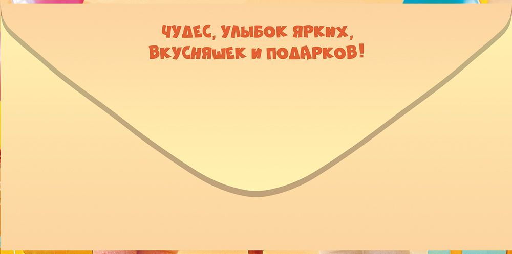 Конверт для денег формата евро предназначен для оформления денежных подарков на день рождения и ориентирован на использование в розничной продаже и оптовых поставках для магазинов подарков, канцелярии и сувенирной продукции. Изделие изготовлено из плотного картона, что обеспечивает стабильную геометрию, устойчивость к сгибам и разрывам при транспортировке и хранении, а также аккуратный внешний вид при передаче получателю. Габариты готового конверта 168 × 84 мм позволяют удобно размещать в нем стандартные банкноты без дополнительного сгибания. Лицевая сторона оформлена полноцветным изображением с яркой праздничной композицией: персонажи в костюмах зайчиков, торт со свечами, воздушные шары и подарочные коробки, дополненные текстом «Поздравляю! тебе». Внутри предусмотрено текстовое поздравление и зона для личной подписи, что сокращает время обслуживания розничного покупателя и упрощает подбор готового решения для поздравления. Печатное изображение дополнено отделкой блестками в лаке радужного эффекта, благодаря чему поверхность частично мерцает при освещении, оставаясь при этом устойчивой к истиранию и не осыпаясь при обычной эксплуатации. Конверт рассчитан на хранение в стандартных витринных лотках и напольных стойках, не деформируется при вертикальной выкладке и удобен для фасовки по артикулам. Упаковка содержит 10 изделий, что оптимально для формирования полочного запаса, планирования закупок и контроля остатков в торговой точке. Конверт подходит для дарения детям и взрослым, уместен в частных поздравлениях, в корпоративной среде и при вручении коллективных денежных подарков, обеспечивая единый визуальный стиль и аккуратную подачу денежного вклада.