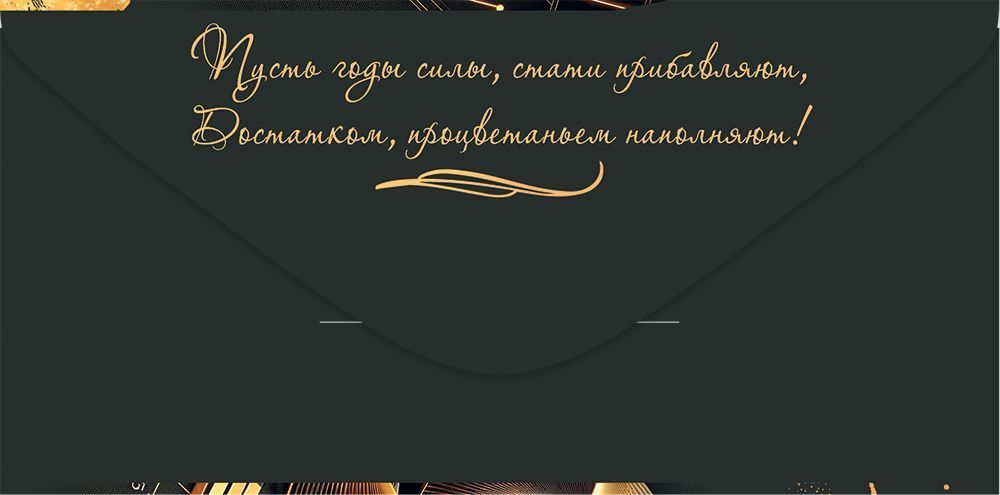 Конверт для денег формата «Евро» предназначен для оформления денежного подарка к юбилею и ориентирован на использование в розничной продаже и оптовых поставках для магазинов подарочной и канцелярской продукции. Изделие выполнено из плотного картона, обеспечивающего стабильную геометрию и сохранность содержимого при транспортировке, хранении и передаче получателю. Готовый размер конверта составляет 168 × 84 мм, что позволяет компактно размещать его в стандартных витринах, настольных лотках и напольных стендах, а также использовать в почтовых и подарочных упаковках соответствующего формата. Лицевая сторона оформлена полноцветной печатью с тематическим изображением в деловом стиле: композиция с перьевой ручкой, карманными часами и абстрактными графическими элементами подчеркивает статусный характер юбилейного подарка и делает изделие уместным для поздравления деловых партнёров, руководителей и коллег. В оформлении предусмотрены декоративные стразы, закрепленные на ключевых элементах иллюстрации; это придает поверхности дополнительный рельеф и световой акцент, хорошо заметный при выкладке на полке и при рассматривании вблизи. Использование страз требует аккуратного обращения, однако при бережном хранении в коробах или стеллажах они устойчивы к обычным механическим воздействиям, характерным для розничного оборота. На конверте размещён готовый поздравительный текст «С юбилеем!», что сокращает время выбора для конечного покупателя и снижает потребность в дополнительных открытках при формировании подарочного набора. Внутреннее пространство рассчитано на размещение купюр без сгиба и может использоваться как для единичных вложений, так и для более объёмного денежного подарка. Небольшая толщина и единичная комплектация (1) удобны для поштучной выкладки, формирования ассортимента по тематикам и возрастным линейкам, а также для точного планирования складских остатков и пополнения коллекции поздравительных аксессуаров к юбилеям.