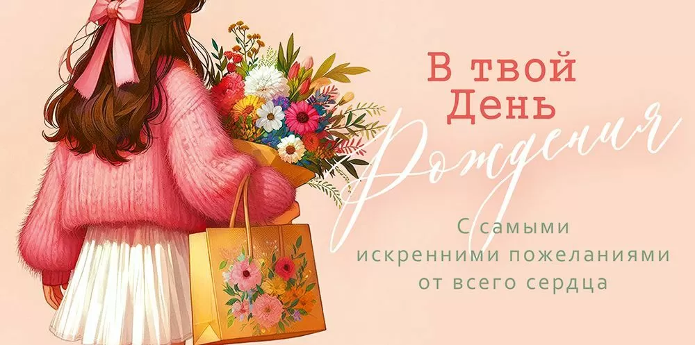 Поздравительный конверт для денег "В твой День рождения" обязательно порадует получательницу своим романтичным дизайном! Изделие украшено изображением в нежных, розовых тонах, на котором стоящая спиной девушка с бантом в волосах держит в руках букет прелестных цветов – такое оформление придется по вкусу тонко чувствующим, нежным натурам. Конверт выполнен из прочного материала, имеет высокое качество печати и дополнительные инкрустации в виде радужных блесток в лаке, который предупреждает их обсыпание или отслаивание – всё это делает данный конверт отличным и долговечным памятным сувениром. Во внутренней части напечатаны оригинальные слова, которые отлично дополнят вложенную в него денежную сумму, подарочный сертификат или билеты на концерт.