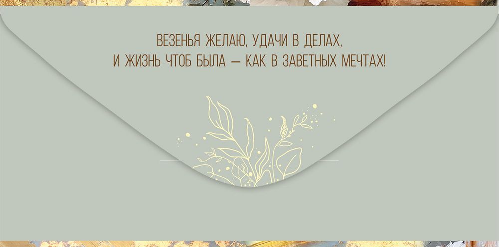 Конверт для денег формата «Евро» изготовлен из плотного картона, обеспечивающего стабильную геометрию изделия при хранении, транспортировке и закладке купюр. Готовый размер 168 × 84 мм оптимален для стандартных банкнот и сертификатов без необходимости сгиба, что удобно как для розничного дарения, так и для формирования оптового ассортимента с единым форматом. Конверт имеет фигурную вырубку, за счёт которой аккуратно оформляется линия клапана и облегчается открывание, при этом габариты остаются совместимыми с большинством витринных и стеллажных решений. Лицевая сторона оформлена полноцветным изображением букета белых цветов в золотистых вазах на нейтральном фоне, дополненным текстом «ПОЗДРАВЛЯЮ!», что делает изделие универсальным для поздравлений с днём рождения, юбилеем, профессиональными и календарными праздниками. Отделка выполнена с применением золотых блёсток в лаке, создающих локальные акценты и устойчивый к истиранию декоративный эффект; покрытие рассчитано на многократный контакт при выкладке и выборе товара. Использование картона позволяет конверту сохранять форму при размещении в коробах, кассетах и напольных стойках, а также при пересылке в упаковках крупными партиями. Внутренняя сторона предназначена для вложения денежных средств или подарочного сертификата; при необходимости на свободном поле можно сделать краткую подпись. Нейтральная цветовая гамма и отсутствие жёсткой привязки к конкретному событию упрощают планирование закупок: одна позиция закрывает широкий спектр поздравительных поводов и подходит для розничной продажи в магазинах подарков, канцелярии, супермаркетах и киосках. В упаковке 10.