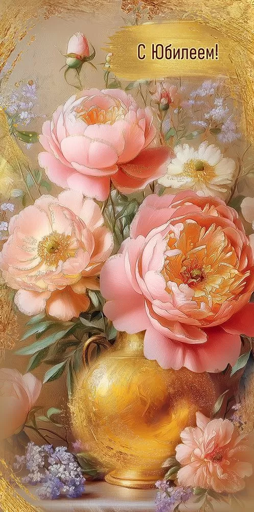 Поздравительный конверт для денег «С Юбилеем!» непременно порадует виновника или виновницу торжества. На лицевой стороне изображен букет розовых пионов с зелеными листьям. Дополняет их золотая ваза и лежащие около нее веточки сирени. Изделие выполнено из прочного материала, имеет высокое качество печати и дополнительные инкрустации в виде золотых блесток в лаке, предупреждая их обсыпание или отслаивание – всё это делает данный конверт отличным памятным сувениром. Во внутренней части напечатаны пожелания в стихах, которые отлично дополнят вложенную в него денежную сумму, подарочный сертификат или билеты на концерт.
