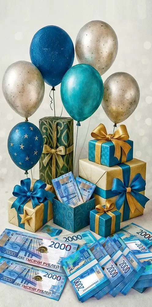 Конверт для денег без надписи (шары, подарки, 2000 рублей)