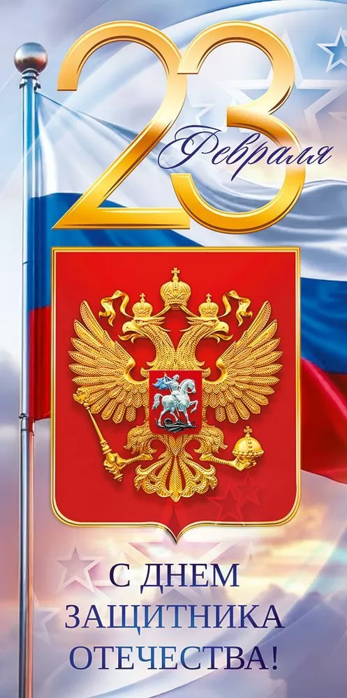 Поздравительный конверт для денег «С Днем защитника Отечества!» с патриотичным дизайном преобразит февральский праздник. На фоне рассветного неба развевается российский флаг, как символ свободы и величия государства. В центре композиции – герб в красных и золотых оттенках. Отличный подарок для настоящих героев! Также внутри находится текст с приятными пожеланиями. Данный дизайнерский конверт для денег идеально подойдет в качестве основного подарка или как приятное дополнение к нему. Внутрь можно поместить любую денежную сумму, подарочный сертификат или билеты на концерт. Благодаря прочным материалам производства и качеству печати изделие удобно транспортировать и хранить – оно надолго сохранит свой яркий внешний вид, не помнется и не выцветет, что делает его не только хорошим подарком, но и прекрасным памятным сувениром!