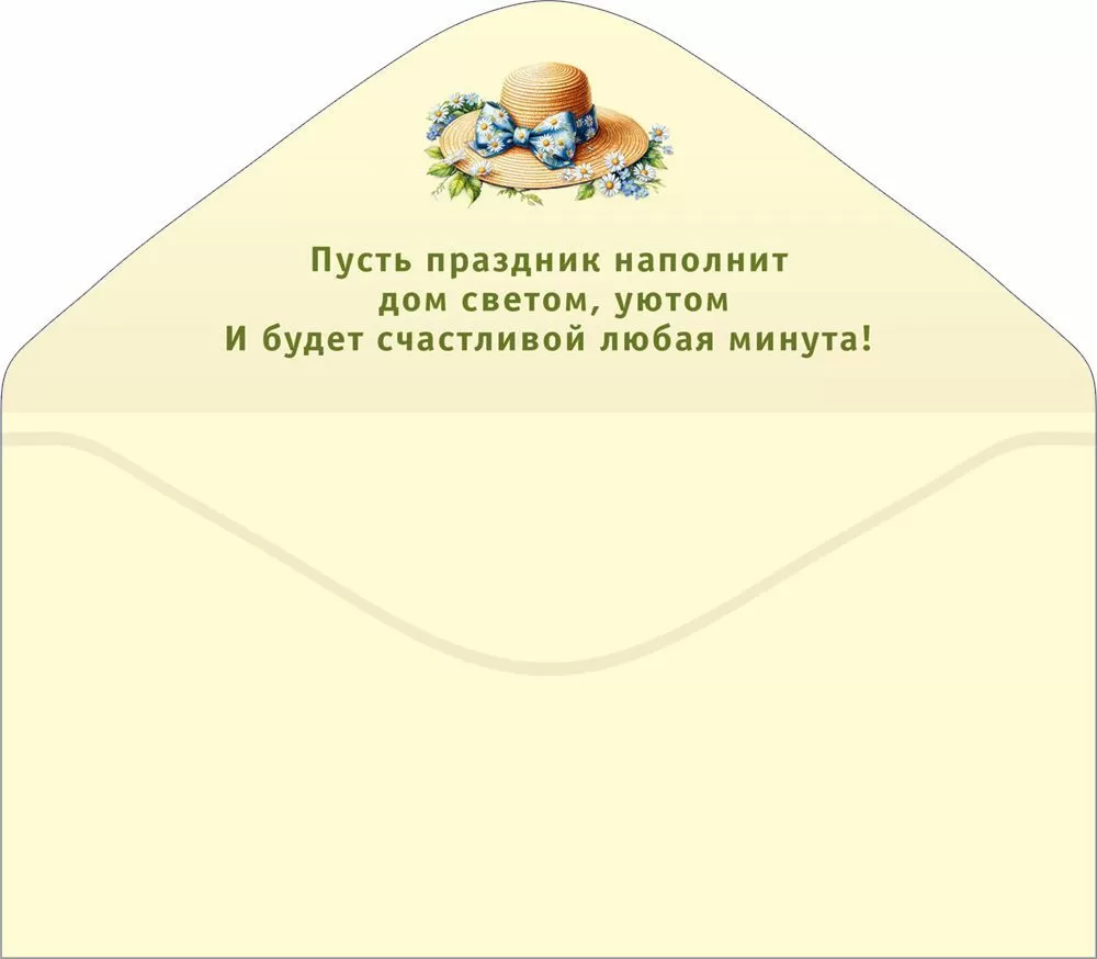 Поздравительный конверт для денег «С Днем рождения!» с летним дизайном преобразит любое торжество. Изделие украшено прекрасным пейзажем: зеленые холмы, уютный домик и летняя шляпка с лентой. Также внутри находится текст с приятными пожеланиями. Данный дизайнерский конверт для денег идеально подойдет в качестве основного подарка или как приятное дополнение к нему. Внутрь можно поместить любую денежную сумму, подарочный сертификат или билеты на концерт. Благодаря прочным материалам производства и качеству печати изделие удобно транспортировать и хранить – оно надолго сохранит свой яркий внешний вид, не помнется и не выцветет, что делает его не только хорошим подарком, но и прекрасным памятным сувениром!