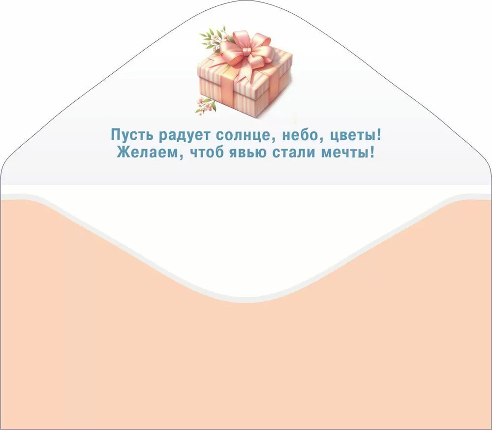 Поздравительный конверт для денег «Поздравляем!» с романтичным дизайном преобразит любое торжество. Изделие украшено изображениями подарочной коробки и воздушных шаров, выполненных в стиле акварельного рисунка. Также внутри находится текст с приятными пожеланиями. Данный дизайнерский конверт для денег идеально подойдет в качестве основного подарка или как приятное дополнение к нему. Внутрь можно поместить любую денежную сумму, подарочный сертификат или билеты на концерт. Благодаря прочным материалам производства и качеству печати изделие удобно транспортировать и хранить – оно надолго сохранит свой яркий внешний вид, не помнется и не выцветет, что делает его не только хорошим подарком, но и прекрасным памятным сувениром!