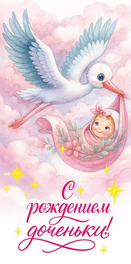 Конверт для денег формата евро предназначен для оформления денежного подарка к рождению девочки и ориентирован на использование в розничной продаже и оптовых поставках для магазинов подарочной продукции, цветочных салонов и сувенирных отделов. Основа изделия выполнена из картона, что обеспечивает достаточную жесткость, устойчивость к заломам и сохранение формы при транспортировке и хранении в стандартных витринных и складских стеллажах. Готовый размер конверта составляет 168 × 84 мм, что соответствует распространённому евроформату и позволяет размещать внутри купюры без сгибов, а также стандартные подарочные сертификаты аналогичного размера. Лицевая сторона оформлена цветной иллюстрацией с аистом, несущим свёрток с младенцем, и содержит поздравительный текст «С рождением доченьки!», поэтому изделие не требует дополнительного оформления или подписи на внешней стороне и может использоваться как самостоятельный праздничный атрибут. Внутренняя часть конверта, как правило, предусматривает зону для вложения купюр и при необходимости для краткого личного пожелания, что удобно при вручении подарка в кругу семьи, на выписке из роддома или семейном торжестве. Отделка без дополнительных спецэффектов облегчает укладку в стопы, снижает риск повреждений поверхности при массовой транспортировке и делает изделие универсальным для различных ценовых сегментов ассортимента. Плотный картонный материал совместим с типовыми упаковочными решениями: конверты можно хранить в фирменных блоках, пластиковых боксах или стандартных полиграфических коробах, не опасаясь деформации. Количество в упаковке 10, что удобно для планирования оптовых закупок, формирования минимальных остатков на складе и поддержания стабильного наличия позиции в сезон повышенного спроса, связанном с рождением ребёнка.