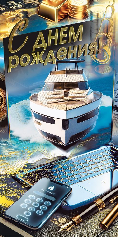 Конверт для денег формата евро предназначен для оформления денежного подарка и сертификатов и ориентирован на использование в ассортименте магазинов подарочной продукции, канцелярии и сувенирной группы. Изделие изготовлено из плотного картона, обеспечивающего стабильную геометрию, сохранность купюр без заломов и удобство укладки в стандартные кассетные и стеллажные системы хранения. Готовый размер конверта 168 × 84 мм рассчитан под купюры основного номинального ряда без дополнительного сгиба, что удобно как при розничной продаже, так и при формировании крупных партий для корпоративных поздравлений. Лицевая сторона оформлена полноцветным изображением с тематикой успеха и современных технологий: яхта на волне, ноутбук, смартфон, деловые аксессуары, монеты и слитки, а также крупная надпись «С ДНЕМ РОЖДЕНИЯ!», что делает конверт универсальным решением для поздравления мужчин и женщин делового круга, партнёров, клиентов и сотрудников. В оформлении используется золотая фольга, создающая акцент на надписи и отдельных деталях, и глянцевый УФ-лак, повышающий износостойкость печати и устойчивость к истиранию при транспортировке и выкладке. Внутри конверт без текста, что позволяет использовать его в широком спектре сценариев — от личных поздравлений до официальных вручений премий и бонусов, а также адаптировать под фирменный стиль компании с помощью штампа или подписи от руки. Конструкция предусматривает стандартный клапан для вложения денег или подарочной карты; изделие удобно складывается стопками, не деформируется и не увеличивает объём упаковочных мест. В упаковке 10, что упрощает расчёт и планирование закупок для оптовых клиентов, позволяет эффективно формировать полку и поддерживать стабильный ассортимент в период сезонного спроса на поздравительную продукцию ко дню рождения.