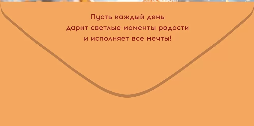 Подарочный конверт изготовлен из плотного картона. Материал хорошо держит форму и не помнется при транспортировке. Сверху на картонной основе отпечатано красочное полноцветное изображение. На обратной стороне есть теплые пожелания.