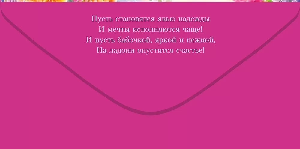 Подарочный конверт изготовлен из плотного картона. Материал хорошо держит форму и не помнется при транспортировке. Сверху на картонной основе отпечатано красочное полноцветное изображение. На обратной стороне есть теплые пожелания.