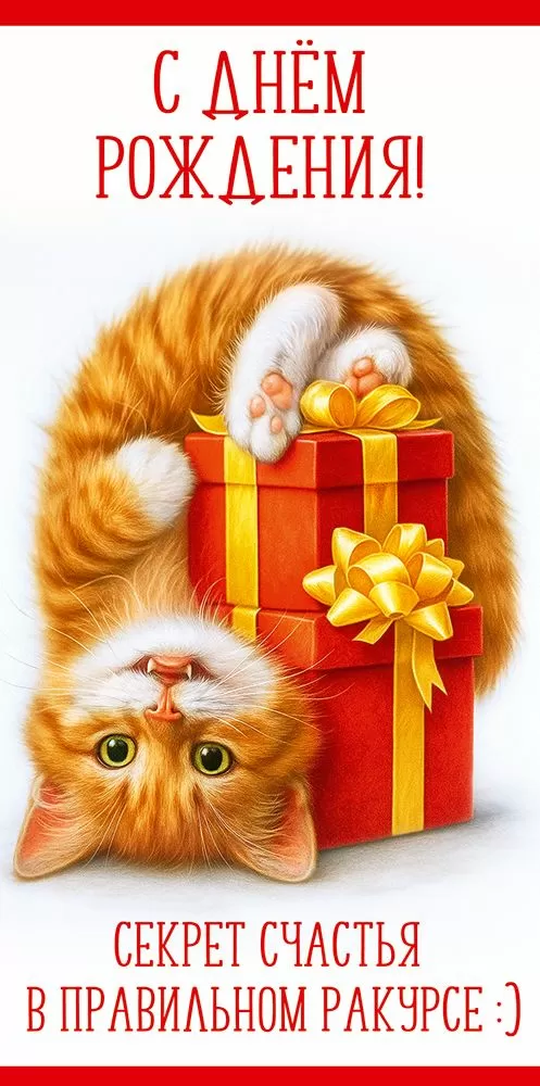 Конверт для денег "С днем рождения! Секрет счастья в правильном ракурсе" идеально подходит в качестве подарка или дополнения к подарку. Милая иллюстрация с пушистым котиком, который обнимает коробки-подарки и смотрит на мир вверх ногами, вдохновит и поднимет настроение! Четкое полноцветное изображение покрыто глянцевым ВД-лаком. Материал – плотный картон. На обратной стороне конверта есть текст-пожелание. Размеры – 168х84 мм. На нашем сайте можно заказать конверты для денег оптом. В упаковке – 10 шт.