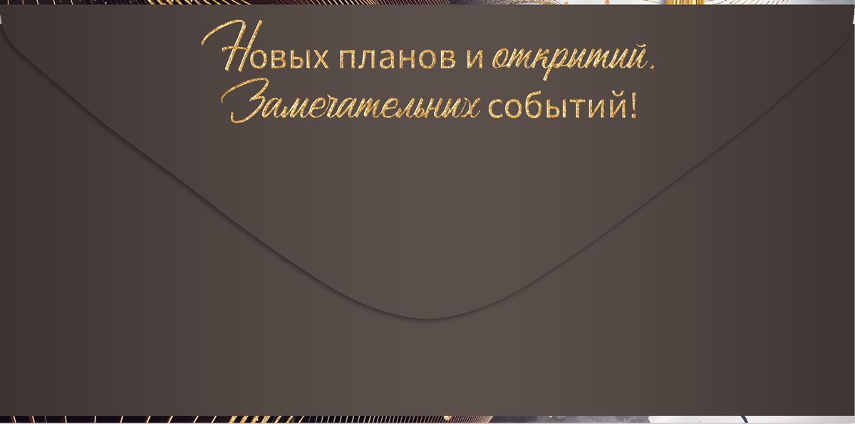 Конверт для денег формата «Евро» предназначен для вручения денежных подарков и подарочных сертификатов и ориентирован на использование в ассортименте праздничной продукции. Изделие выполнено из плотного картона, обеспечивающего стабильную геометрию, устойчивость к изгибам и сохранность содержимого при транспортировке и хранении. Готовый размер конверта составляет 168 × 84 мм, что позволяет размещать в нем стандартные купюры и пластиковые карты без сгиба. Конструкция с фигурной вырубкой формирует декоративный клапан и аккуратную линию раскрытия, что удобно при серийной выкладке на полке и в напольных дисплеях. Лицевая сторона оформлена печатной композицией с изображением наручных часов, банковских карт и золотой ручки, дополненной поздравительным текстом и актуальной для мужских и деловых подарков тематикой. В нижней части предусмотрен прозрачный сектор с пайетками, создающими подвижный декоративный эффект; элементы надежно зафиксированы в замкнутом внутреннем объеме, что исключает их высыпание при активной эксплуатации. Отделка выполнена с применением золотых блесток в лаке, образующих устойчивый к истиранию контур по периметру и акценты на отдельных графических деталях, благодаря чему конверт сохраняет внешний вид при многократных касаниях, перемещении в коробах и пакетах. Внутреннее поле рассчитано на размещение денежных вложений и краткого письменного поздравления; текст на лицевой стороне упрощает выбор готового решения для поздравления с юбилеем, профессиональным праздником, карьерным достижением или другим торжественным поводом. Плотный картон и компактный формат обеспечивают удобство штабелирования, транспортировки и хранения в оптовых партиях, конверт не деформируется в стандартных коробах и подходит для формирования смешанных выкладок с другими праздничными товарами аналогичного размера. Количество в упаковке: 1.