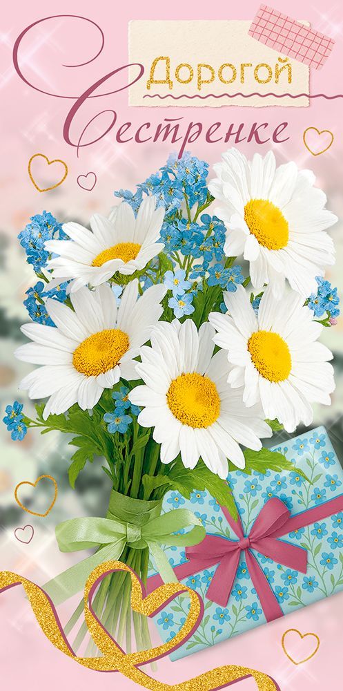 Конверт для денег формата «Евро» предназначен для денежного подарка и небольших вложений к основному презенту. Изделие изготовлено из плотного картона, что обеспечивает стабильную геометрию, аккуратный внешний вид и устойчивость к деформации при хранении и транспортировке крупными партиями. Готовый размер конверта 168 × 84 мм позволяет удобно размещать внутри купюры стандартных размеров без сгибов, а также подарочные сертификаты или небольшие поздравительные вкладыши. Конверт имеет фигурную вырубку, за счёт которой лицевую часть дополняет декоративный контур, повышающий визуальную выразительность изделия в выкладке и на витрине. На лицевой стороне размещена композиция с букетом ромашек и незабудок на розовом фоне и подарочной коробкой, а также текстовое обращение «Дорогой сестренке», что определяет назначение конверта как специализированного решения для поздравлений сестры с днём рождения и другими семейными праздниками. Внутри предусмотрен печатный текст, позволяющий использовать изделие без дополнительной подписи или дополняя его личными пожеланиями. Отделка выполнена с применением золотых блёсток в лаке, создающих точечные акценты на элементах дизайна и обеспечивающих устойчивость декоративного слоя к истиранию при многократном контакте и перемещении в коробах, лотках и кассовой зоне. Конверт рассчитан на использование в розничной продаже поштучно, при этом упаковка по 10 штук удобна для оптовых закупок, планирования ассортимента и формирования тематических полок к праздничным датам. Компактный размер и стандартная форма облегчают хранение на складе, укладку в транспортные короба и комбинирование с другими конвертами аналогичного формата в единой линейке подарочной продукции.
