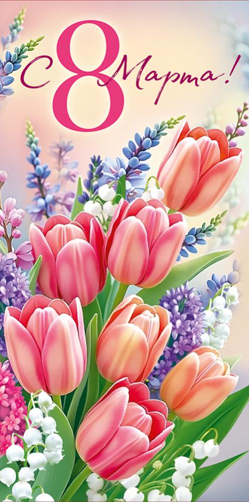 Конверт для денег формата евро предназначен для оформления и вручения денежного подарка к Международному женскому дню. На лицевой стороне размещена цветная композиция с тюльпанами, ландышами и весенними цветами на мягком градиентном фоне, а также поздравительная надпись «С 8 Марта!», что позволяет использовать изделие как готовое решение для праздничного оформления без дополнительного декора. Конверт изготовлен из картона, что обеспечивает достаточную жесткость, устойчивость к деформации при транспортировке и хранении, а также аккуратный внешний вид при передаче получателю. Поверхность дополнительно обработана глянцевым УФ-лаком, за счет чего изображение отличается повышенной стойкостью к истиранию, выцветанию и воздействию влаги, сохраняет насыщенность красок при длительном хранении в складских и торговых помещениях. Размер готового изделия 168×84 мм соответствует стандартному евроформату, благодаря чему конверт совместим с большинством купюр и подарочных сертификатов, удобно размещается в витринных кассетах, напольных и настольных стойках, а также в почтовых и курьерских упаковках. Внутри предусмотрено текстовое поздравление, что сокращает время обслуживания конечного покупателя и упрощает подбор сопутствующего ассортимента к 8 Марта. Упаковка 10 штук оптимальна для оптовых и розничных поставок, позволяет формировать выкладку по цвето-тематическим сериям и планировать остатки по сезонам. Конверт подходит для использования в цветочных салонах, сувенирных и книжных магазинах, торговых сетях и корпоративных закупках, где требуется единый визуальный стиль и предсказуемое качество исполнения при больших тиражах.