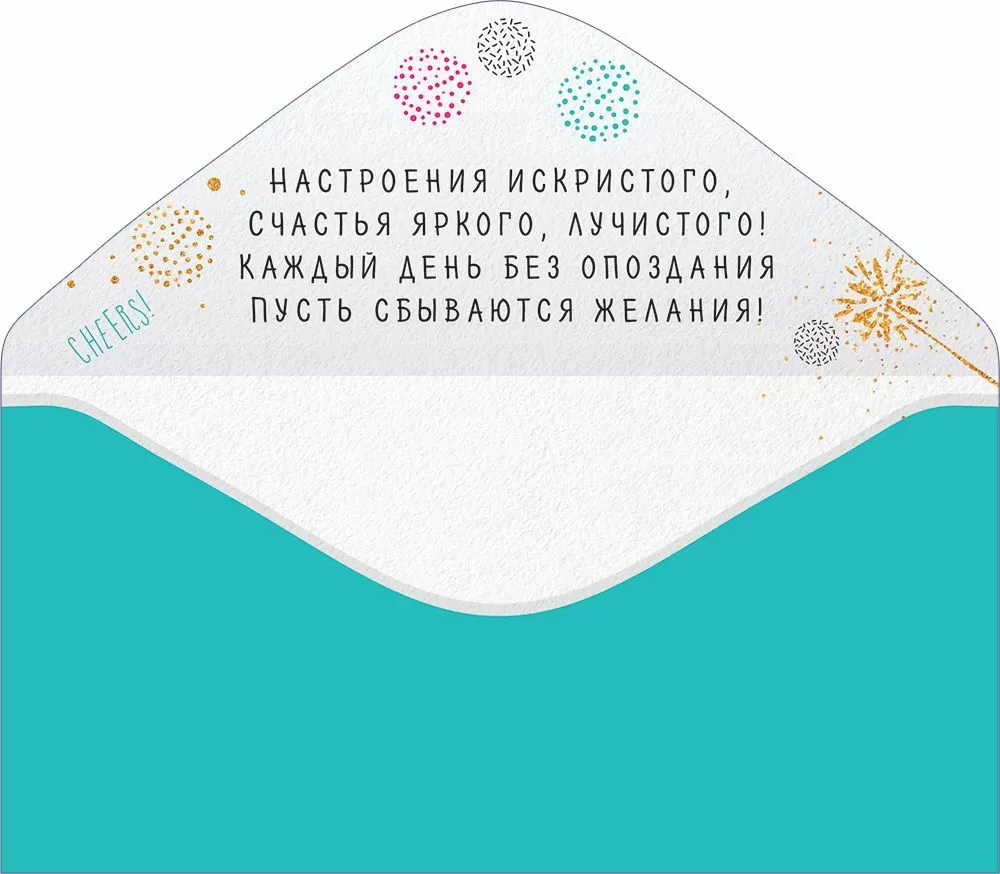 Денежный конверт для эффектного подарка на день рождения или юбилей! В прозрачном кармане, украшающем дизайн, расположены сверкающие пайетки. Они свободно двигаются, благодаря этому прекрасно ловят свет и переливаются яркими искорками. Подарок в такой упаковке приятно удивит и непременно вызовет восхищение! Подарочные конверты для денег ручной работы – достойный выбор для оформления денежного подарка.