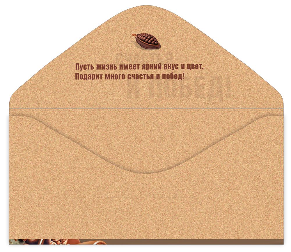 Конверт для денег формата «Евро» предназначен для вручения денежных подарков на день рождения и может использоваться как самостоятельный подарок или дополнение к основному презенту. Изделие изготовлено из плотного картона, что обеспечивает устойчивость к деформации при хранении, транспортировке и эксплуатации, позволяет конверту сохранять форму при размещении купюр стандартного размера и вложении поздравительной записки. Готовые габариты 168 × 84 мм обеспечивают совместимость с большинством банковских купюр и удобство размещения в стандартных витринных и напольных дисплеях. Лицевая сторона оформлена полноцветным изображением в шоколадно-кофейной гамме с крупной надписью «С Днем рождения!», графикой плиток шоколада, кофейных зерен и чашки кофе, что делает изделие уместным для широкого круга получателей и позволяет включать его в универсальные праздничные коллекции. Внутри предусмотрен печатный поздравительный текст, что сокращает время на подготовку товара к продаже в рознице и упрощает выбор конечному покупателю. Двустороннее изображение обеспечивает завершенный внешний вид как с лицевой, так и с оборотной стороны, что важно при выкладке на открытых стендах и крючках. Использование золотой фольги в отделке усиливает визуальное восприятие, создает акцент на надписи и декоративных элементах, повышая заметность конверта в витрине и формируя единый стиль с другими праздничными позициями, выполненными с применением металлизированных эффектов. Плотный картон устойчив к сгибам по линии клапана и к истиранию в местах контакта, что снижает процент брака при оптовых поставках и многократных перекладках на складе. Количество в упаковке 10 позволяет удобно планировать заказы, формировать мелкооптовые и розничные партии, оптимизировать выкладку по фасингам и поддерживать стабильное наличие ходовой поздравительной тематики в ассортименте.