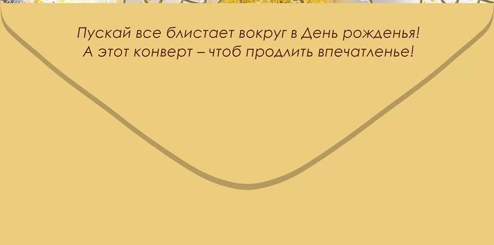 Поздравительный конверт для денег «С Днем Рождения!» преобразит любое торжество! Изделие выполнено в праздничных серебряно-золотых цветах и украшено изображением воздушных шаров и узором в виде паззла, добавляющим композиции нотку оригинальности. Конверт выполнен из прочного материала, имеет высокое качество печати и дополнительные инкрустации в виде радужных блесток в лаке, предупреждая их обсыпание или отслаивание – всё это делает данный конверт отличным памятным сувениром. Во внутренней части напечатаны пожелания в стихах, которые отлично дополнят вложенную в него денежную сумму, подарочный сертификат или билеты на концерт.