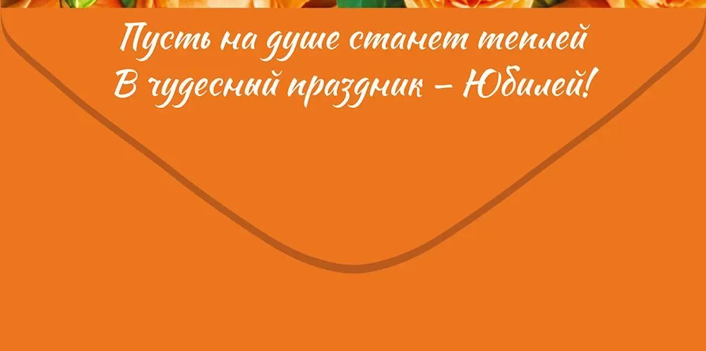 Поздравительный конверт для денег «С Юбилеем!» непременно порадует получательницу своим жизнерадостным дизайном! Изделие по всему периметру украшено изображением прекрасных роз яркого апельсинового цвета. Зеленые листочки визуально освежат и разнообразят изображение, лаконично завершая эту ботаническую композицию. Конверт выполнен из прочного материала, имеет высокое качество печати и дополнительные инкрустации в виде радужных блесток в лаке, который предупреждает их обсыпание или отслаивание – всё это делает данный конверт отличным и долговечным памятным сувениром. Во внутренней части напечатаны приятные пожелания в стихах, которые отлично дополнят вложенную в него денежную сумму, подарочный сертификат или билеты на концерт.