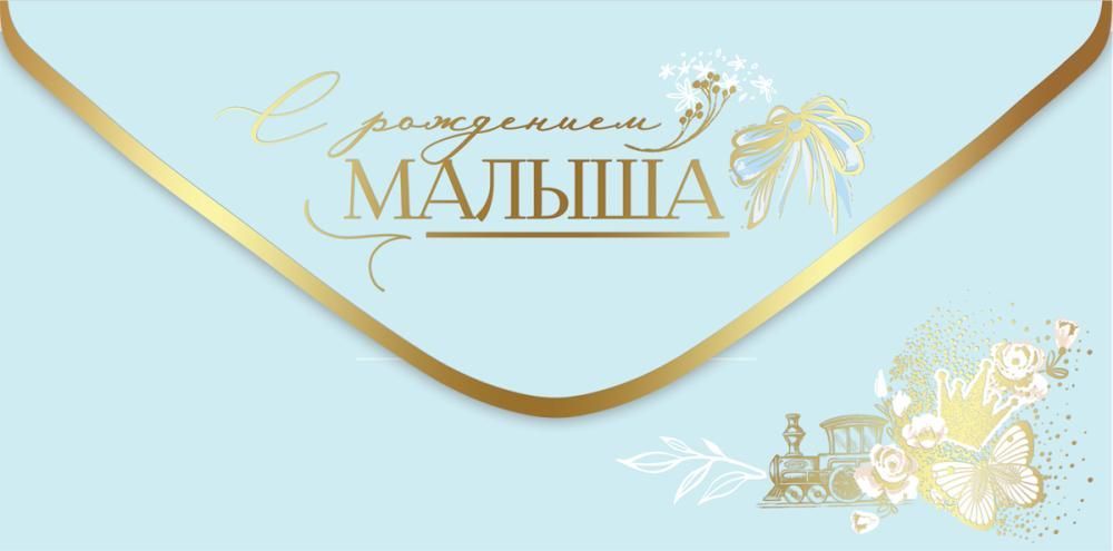 Конверт для денег формата «Евро» предназначен для оформления денежного подарка к рождению ребёнка и ориентирован на использование в розничной продаже и оптовых поставках для магазинов подарочной и канцелярской группы. Изделие выполнено из плотного картона, что обеспечивает устойчивость формы, защиту вложенных купюр и сохранение внешнего вида при транспортировке и хранении. Готовый размер конверта 168 × 84 мм позволяет размещать внутри стандартные банковские купюры без сгибов, что удобно при массовых закупках для унификации ассортимента. Конверт имеет фигурную вырубку клапана, благодаря чему лицевое оформление с надписью «С рождением малыша» и тематическим рисунком (цветы, банты, детский паровозик) визуально подчёркивается контуром и подходит для выкладки в витринах и на кассовых зонах. Внешняя сторона дополнительно обработана лаком soft-touch, создающим матовую бархатистую поверхность с приятными тактильными свойствами и повышенной стойкостью к истиранию, что важно при многоразовом перекладывании товара на складе и в торговом зале. Золотая фольга используется для выделения надписи и декоративных элементов, формируя чёткий, износостойкий блестящий рисунок, который не осыпается при стандартных нагрузках и не требует дополнительной защиты. Внутри конверт без текста, что даёт возможность использовать его для разных ситуаций, связанных с рождением ребёнка, добавлять индивидуальные подписи вручную или вкладывать поздравительные открытки стандартного малого формата. Нейтральная светлая цветовая гамма облегчает включение позиции в универсальные линейки товаров к выписке из роддома и детским праздникам. Плотный картонный материал и компактные размеры обеспечивают удобство штабелирования, упаковки и транспортировки, а также позволяют формировать ровные товарные выкладки. В упаковке 10.