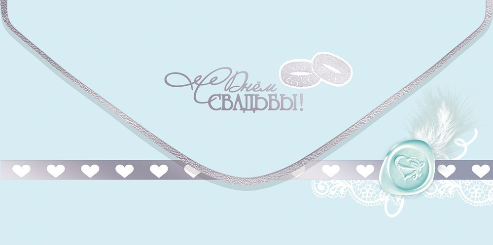 Конверт для денег формата евро предназначен для денежного подарка к свадьбе и ориентирован на использование в розничной продаже и оптовых поставках для магазинов подарочной продукции, книжных сетей и сувенирных отделов. Изделие выполнено из плотного картона, что обеспечивает стабильную геометрию, аккуратный внешний вид и достаточную жесткость при хранении и транспортировке. Готовый размер конверта 168 × 84 мм позволяет удобно размещать купюры стандартного банковского формата без сгибов и деформации, что важно при массовой комплектации подарочных наборов. Фигурная вырубка формирует аккуратный контур клапана, упрощает открывание и придает изделию завершенный вид на витрине. Внешняя сторона оформлена в светло-голубой гамме с тематическим свадебным рисунком: декоративная лента с сердечками, кружевные элементы, стилизованная печать и надпись «С Днём свадьбы!», что делает конверт универсальным решением для оформления денежного подарка молодожёнам без привязки к конкретному сценарию торжества. Поверхность дополнительно обработана лаком soft-touch, создающим приятную на ощупь матовую текстуру и повышающим износостойкость, а также декорирована серебряной фольгой, которая подчёркивает отдельные элементы дизайна и сохраняет выразительность при искусственном и дневном освещении. Внутренняя сторона без текста, что удобно для оптовых покупателей и конечных пользователей: конверт можно использовать в сочетании с любым поздравлением, корпоративной открыткой или индивидуальной надписью. Конструкция рассчитана на стандартные способы выкладки в коробах и на полочных дисплеях, не требует дополнительных вложений для сборки и подходит для долгосрочного складского хранения без потери потребительских свойств. Количество в упаковке 10.