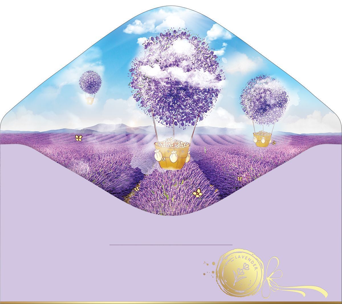Конверт для денег формата «Евро» предназначен для упаковки и вручения денежных подарков и сертификатов и ориентирован на использование в розничной продаже, корпоративных поздравлениях и праздничных мероприятиях. Изделие выполнено из плотного картона, что обеспечивает достаточную жесткость, устойчивость к сгибам и разрывам при транспортировке и хранении, а также сохраняет форму при размещении купюр стандартного размера. Готовый конверт имеет длину 168 и ширину 84 мм, что позволяет использовать его в ассортименте с большинством распространенных денежных номиналов и подарочных карт. Фигурная вырубка формирует аккуратный контур клапана и облегчает открывание, при этом края ровные и чисто обрезанные, без заусенцев, что важно при оптовых поставках и выкладке на витрине. Внешняя сторона оформлена в светло‑лавандовом тоне с золотистым контуром по периметру и декоративным изображением веточек лаванды, печати с надписью «Lavender» и поздравительным текстом «С Днём рождения!», что делает конверт тематическим решением для дня рождения в частном и корпоративном сегменте. Отделка включает лак soft-touch, создающий матовую, слегка бархатистую на ощупь поверхность, устойчивую к мелким царапинам и потертостям, а также золотую фольгу, используемую для выделения надписей и отдельных элементов рисунка, что повышает износостойкость печати и визуальную читаемость при интенсивной эксплуатации. Внутри конверт без текста, что упрощает унификацию ассортимента и позволяет использовать единую позицию для разных категорий клиентов, в том числе при вложении фирменных открыток, визиток или брендированных вкладышей. Компактный размер изделия удобен для штабелирования, упаковки в термоусадочную пленку или коробки и оптимизации складского пространства, что снижает риски деформации при перевозке крупными партиями. В упаковке 10, что подходит для планирования закупок, формирования полочных выкладок, подарочных наборов и распределения по торговым точкам или отделам компании.