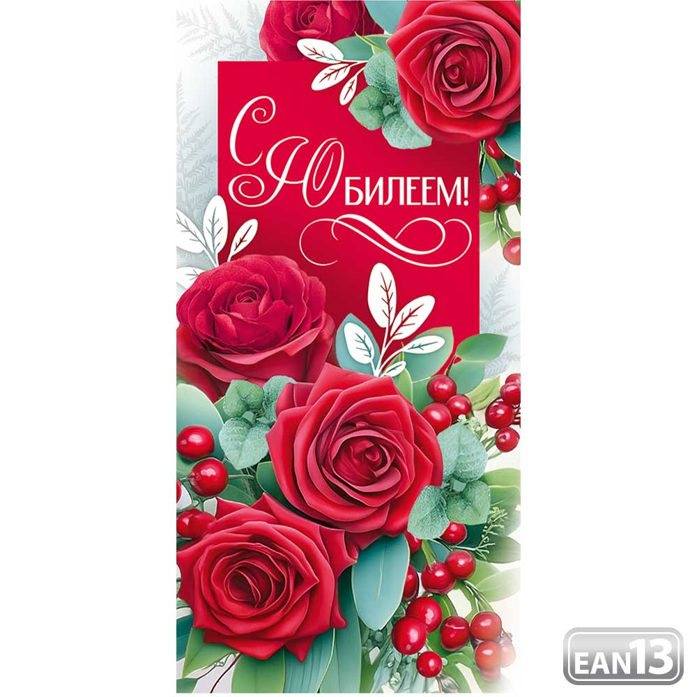 Конверт для денег формата «Евро» предназначен для оформления денежного подарка к юбилею и удобен для включения в ассортимент праздничной продукции как розничных магазинов, так и оптовых закупок. Изделие изготовлено из плотного картона, что обеспечивает устойчивость к замятию, сохранение формы при хранении и транспортировке, а также аккуратный внешний вид при передаче адресату. Размер готового конверта 168×84 мм оптимален для размещения купюр стандартного размера без сгибов и дополнительных вложений, таких как поздравительная карточка или визитка. Лицевая сторона оформлена полноцветным изображением с композициями из красных роз и декоративных листьев, на центральном поле расположен поздравительный текст «С юбилеем!», что позволяет использовать конверт без дополнительной подписи либо дополнять его индивидуальными пожеланиями внутри. Печатное оформление дополнено блестками в лаке радужными, создающими легкий светоотражающий эффект и повышающими визуальную выразительность изделия при витринной выкладке и искусственном освещении. Конверт поставляется в упаковке по 10 штук, что удобно для планирования закупок, формирования полочного запаса и использования в качестве типового решения для поздравлений сотрудников, партнеров и клиентов. Плотный картонный материал сохраняет печать и декоративное покрытие при стандартных условиях эксплуатации, не требует специальных условий хранения, устойчив к кратковременному механическому воздействию, что важно при пересылке или транспортировке в сумке и документах. Конверт подходит для использования в офисах, торговых точках, службах персонала и организации мероприятий, где требуется единообразное оформление денежных подарков к юбилейным датам, а также для индивидуального применения в домашнем кругу.