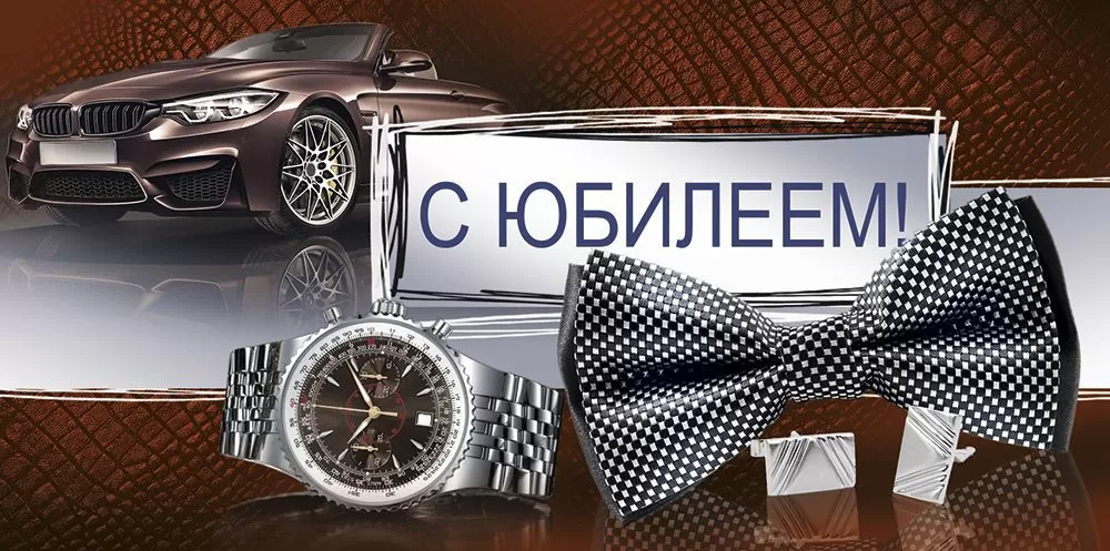 Мужской конверт для денег на Юбилей с брутальным дизайном и блестящими элементами. Приятные слова и яркий рисунок — залог идеального поздравления.