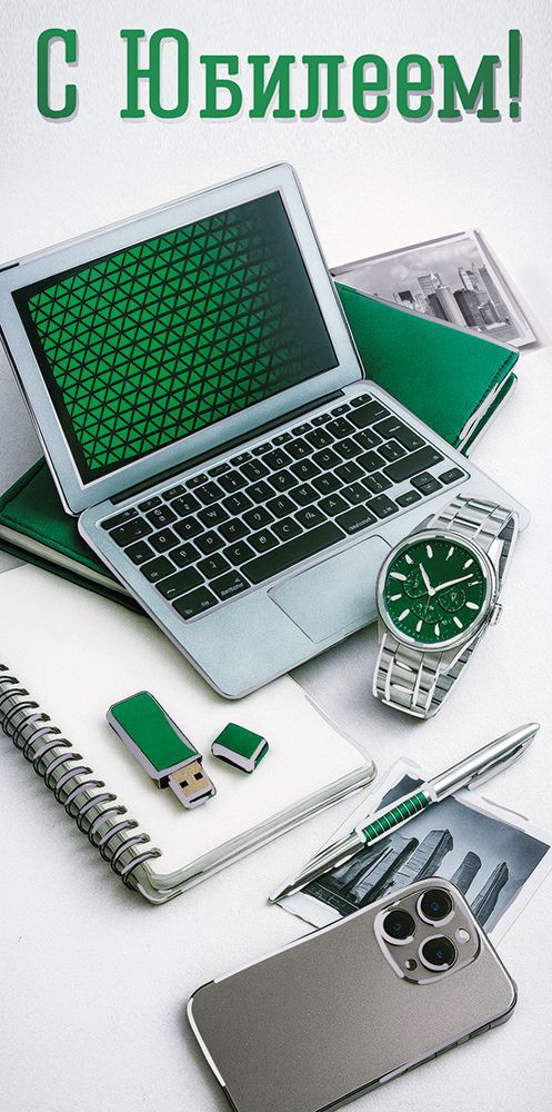 Конверт для денег формата «Евро» предназначен для подарочного вручения денежных средств и сертификатов к юбилейным датам. Изделие выполнено из плотного дизайнерского картона, обеспечивающего стабильную геометрию при транспортировке и хранении, устойчивость к сгибам и сохранение внешнего вида при многократном перелистывании и передаче из рук в руки. Размер готового конверта 168 × 84 мм подходит для размещения купюр стандартных банковских форматов без дополнительного сгибания, а также для вложения подарочных карт и поздравительных записок. Фигурная вырубка формирует аккуратные контуры и удобный клапан, что облегчает закладку и извлечение содержимого и придает изделию законченный презентационный вид в витринной выкладке. На лицевой стороне размещена композиция в деловой тематике: ноутбук, смартфон, наручные часы, ежедневник, флеш-накопитель и ручка, что делает конверт уместным для поздравления коллег, руководителей, партнеров и клиентов, подчеркивая деловой статус получателя. Надпись «С Юбилеем!» выполнена типографским способом с применением серебряной фольги, отделка создает выраженный металлический блеск, устойчивый к истиранию, и визуально выделяет изделие в ассортиментной линейке. Внутри предусмотрен напечатанный поздравительный текст, позволяющий использовать конверт без дополнительной полиграфии и экономить время при массовых вручениях. Плотность картона и качественная печать обеспечивают совместимость с типовыми конвертницами, коробами и стеллажами, удобство штабелирования и транспортировки крупными партиями. Универсальный вертикальный формат позволяет включать данную позицию в стандартный ассортимент праздничной продукции для корпоративных мероприятий и розничных продаж. Количество в упаковке 10.