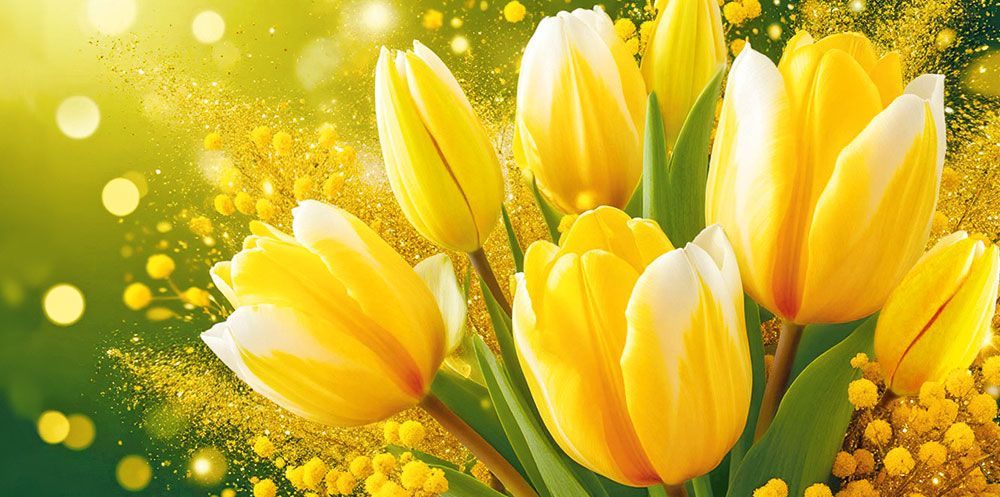Поздравительный конверт для денег без надписи с ярким весенним дизайном преобразит торжество. Изображение желтых тюльпанов на переднем плане делает изделие идеальным для вручения любой женщине: каждый будет рада получить такой конверт. Пушистые цветки мимозы дополняют волшебный букет. Солнечный блики на фоне и всполохи золотых блесток наполняют внешний вид внутренним светом и делают его особенно привлекательным. Данный дизайнерский конверт для денег подойдет в качестве основного подарка или как приятное дополнение к нему. Внутрь можно поместить любую денежную сумму, подарочный сертификат или билеты на концерт. Благодаря прочным материалам производства и качеству печати изделие удобно транспортировать и хранить – оно надолго сохранит свой яркий внешний вид, не помнется и не выцветет, что делает его не только хорошим подарком, но и прекрасным памятным сувениром!