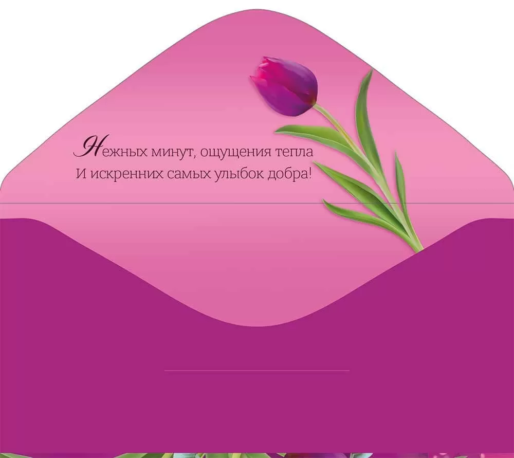 Конверт для денег «С 8 Марта!» с ярким дизайном и изображением цветов. Нежная композиция и приятные слова — залог идеального практичного подарка и поздравления.