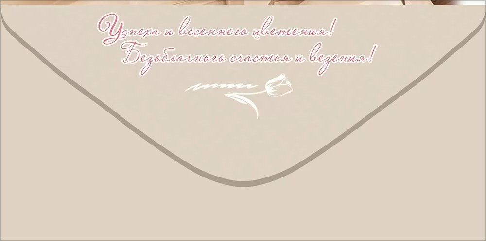 Поздравительный конверт для денег «8 Марта» преобразит любое торжество! Изделие выполнено в спокойной пастельной гамме, где доминируют мягкие розовые и кремовые тона. На лицевой стороне изображена девушка в светлом плаще, держащая объемный букет свежих розовых тюльпанов — символ весенней красоты и женской грации. Легкие штрихи и художественная подача придают изображению особую утонченность и лёгкость. Такой дизайн идеально подойдет для выражения теплых чувств, благодарности и восхищения в Международный женский день. Конверт выполнен из прочного материала и имеет высокое качество печати, что делает его отличным памятным сувениром. Во внутренней части напечатаны пожелания в стихах, которые отлично дополнят вложенную в него денежную сумму, подарочный сертификат или билеты на концерт.