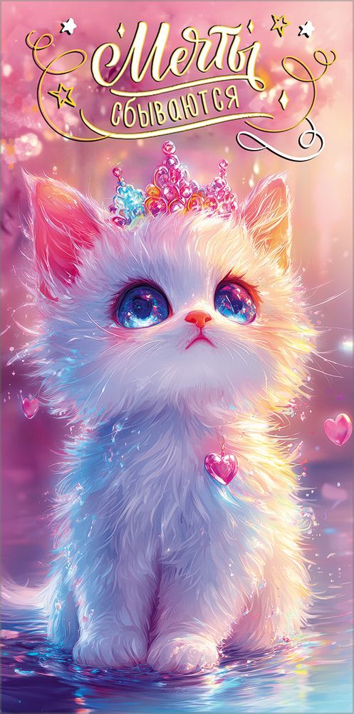 Конверт для денег формата евро изготовлен из плотного картона, что обеспечивает стабильную геометрию изделия при хранении, транспортировке и эксплуатации в торговых точках. Готовый размер 168 × 84 мм позволяет удобно размещать в конверте стандартные денежные купюры без перегибов и деформации, а также использовать его в составе подарочных наборов и готовых решений для розничной выкладки. Конверт имеет фигурную вырубку, за счет которой подчеркнута декоративная форма клапана и лицевая часть, что важно при формировании ассортимента подарочной упаковки среднего ценового сегмента. Лицевая сторона оформлена полноцветным изображением белого котёнка с короной в розово-голубой гамме и содержит текстовое пожелание «Мечты сбываются», поэтому изделие подходит для дарения на дни рождения, детские праздники, выпускные, поощрительные подарки и другие поводы, где требуется универсальное позитивное послание. Наличие текста снижает потребность в дополнительной открытке и упрощает комплектацию подарка для конечного покупателя. Отделка выполнена глянцевым УФ-лаком, который подчёркивает яркость иллюстрации, повышает износостойкость лицевой поверхности, устойчивость к истиранию и кратковременному воздействию влаги, что важно при интенсивном перекладке товара и длительном хранении на витрине. Конверт рассчитан на тиражное использование в сетевой и розничной торговле, оптимален для формирования матрицы детской и молодежной подарочной линейки. В упаковке 10, что удобно для оптовых закупок, планирования остатков и равномерного распределения по торговым точкам. Конверт легко размещается в стандартных кассетах и настольных дисплеях, не требует специальных условий хранения, сохраняет форму при вертикальной и горизонтальной выкладке, подходит как для индивидуальной продажи, так и для комплектации корпоративных подарков.